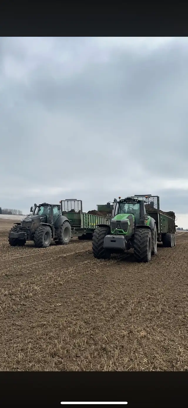 AA Custom Farming is taking bookings for spring manure hauling/spreading. Got three tractors and spreaders and loader ready to go for corral cleaning or just aprons. We can spread or stockpile. Willing to travel for work!