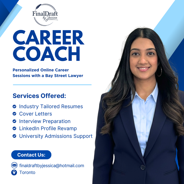 I'm a Bay Street corporate lawyer and former Big4 employee with 3 years of professional career coaching experience. I've helped students and young professionals strengthen their applications, ace interviews, and land competitive roles in law, business, retail, healthcare and public service.