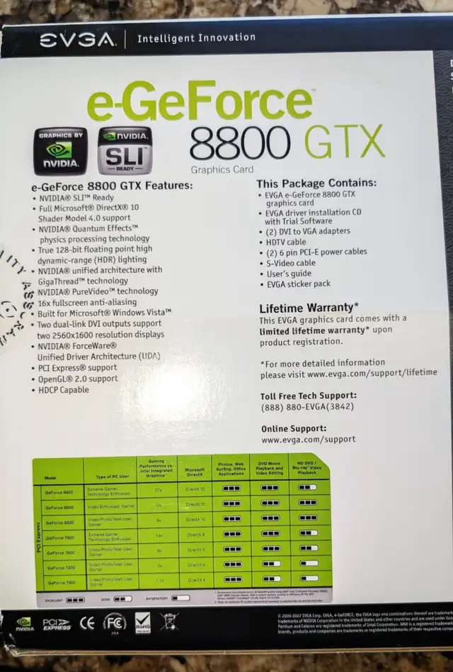 EVGA - NVIDIA GeForce 8800 GTX - 786 MB-GDDR3 - PCIE - 1.0 - X 16 – w/256 bit Bus