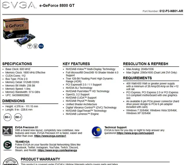 See more Specs - NVIDIA GeForce 8800 GTX Specs | TechPowerUp GPU Database EVGA Product Specs - EVGA - Product Specs - e-GeForce 8800 GTX