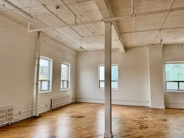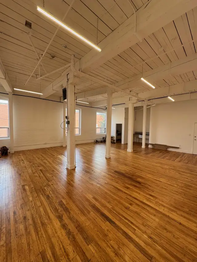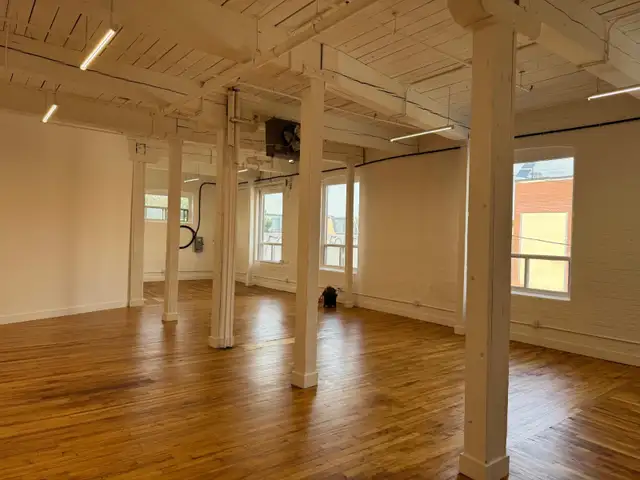 2nd floor corner studio/office, 13 ft ceilings, wood floors, open concept, kitchenette and in-suite 2 pc washroom and private entrance-NO LIVE IN, Rate is plus utilities Call for info or to view 416-889-7100...RATE IS PLUS GAS AND HYDRO