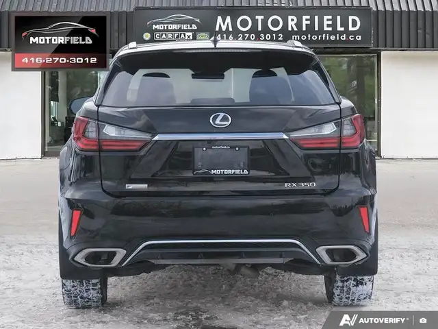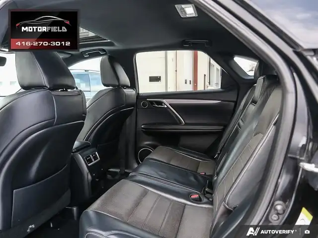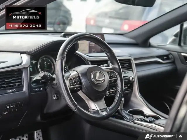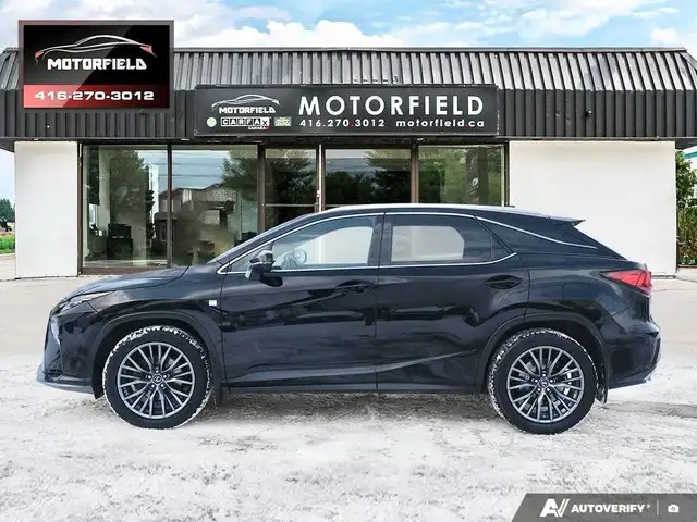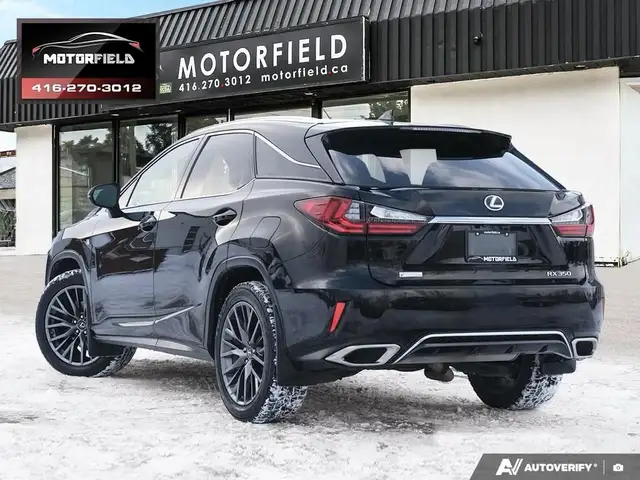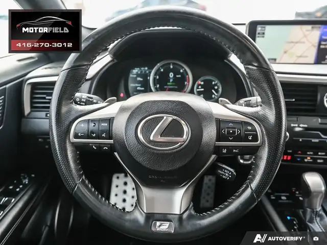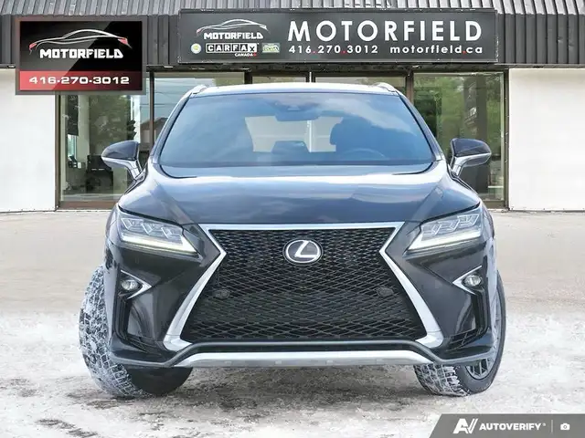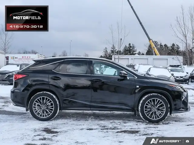 Beautiful RX350 F Sport 2 - Well Maintained - Excellent Shape - Just Serviced at Toyota! Accident Free - Clean CarFAX! Obsidian Black Metallic (Black) on Ebony Perforated Leather Interior - Loaded w/ Remote Start, Keyless Entry, Backup Camera, Upgraded Aluminum Alloy Wheels, XM Radio - Premium Package Includes Bi-Xenon Headlamp System, LED Daytime Running Lights - Premium Perforated Leather Seat Surfaces; Heated And Ventilated Front Seats; Power Moonroof, Rear Bumper Protector, Silver-Painted Roof Rails, Front And Rear Splash Guards, Power Retractable Folding Exterior Mirrors, Auto-Dimming Side-View Mirrors, Auto-Dimming Rear-View Mirror With Compass, Cargo Mat, Cargo Area Multi-Purpose Net and More! CarFAX Verified - Clean Title - Accident Free! As Per OMVIC Regulations, This Vehicle Is Advertised As Not Certified; Certification is Available for $699.