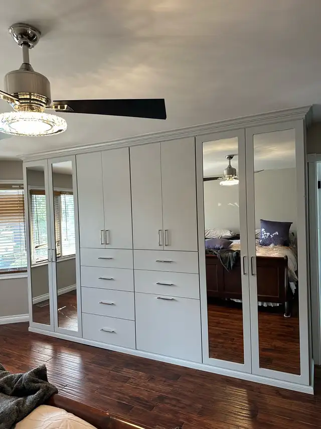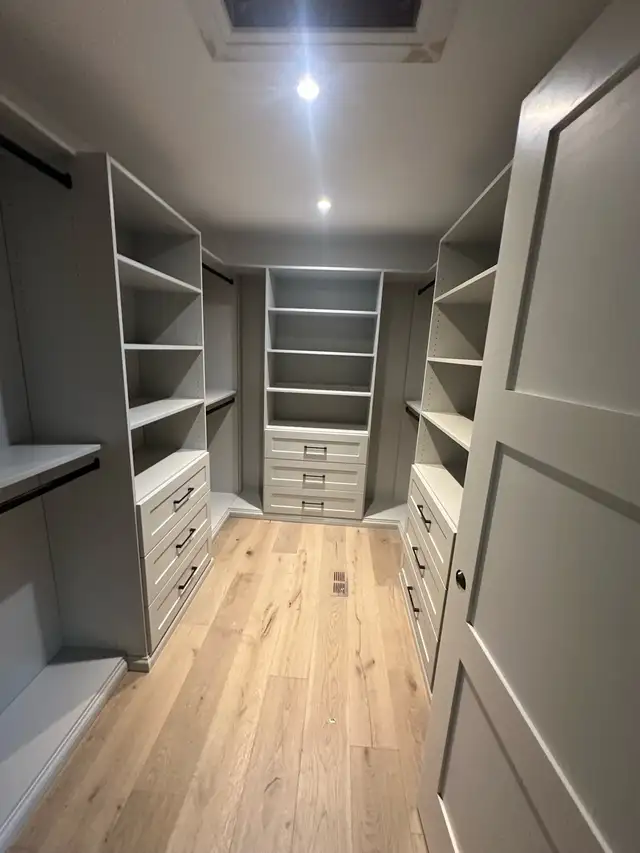 At Blue Gold Closets, we specialize in fully customized storage solutions for every space in your home or business. From bedroom closets, walk-in closets, kitchens, offices, garages, media rooms, and more — we design, build, and install everything from start to finish.