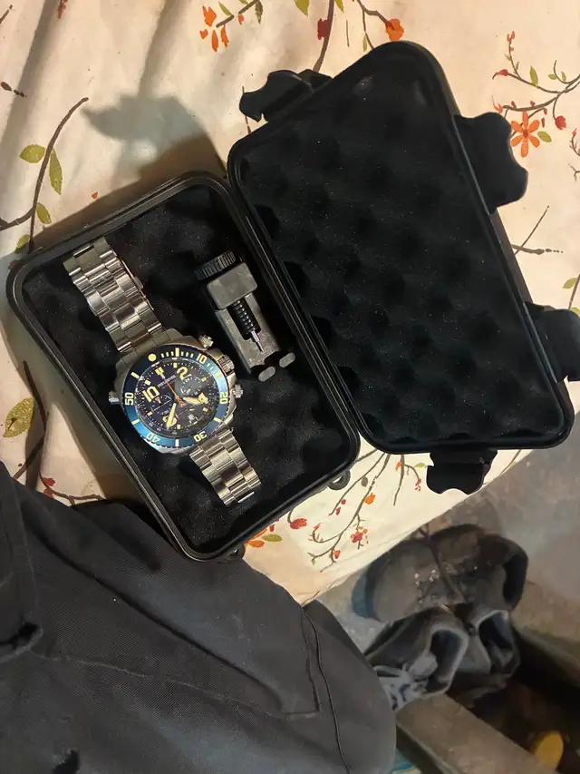 Selling Lige Men's Proffessional 50ATM Diving watch 2000 feet water resistance with a Hybrid Seiko VK63 movement. Brand new and comes with insulated shockproof Box and bracelet adjustment tool. Asking $120. Watch is 500 meters about 2000 feet water resistant. Yes you can shower, wash dishes, and go swimming with this watch. Features a VK63 Hybrid Seiko movement 3-eye window showing seconds, 24 hour, and minutes windows, has date window at the 6 ‘O clock window. This is a serious watch for serious people. All brushed, surgical stainless steel comes with link adjustment tool and shockproof insulated case for storage. An absolute steel for $120 It's a perfect gif for anyone who loves water. CALL OR TEXT ME AT 431-844-5393 if interested. No e-transfers