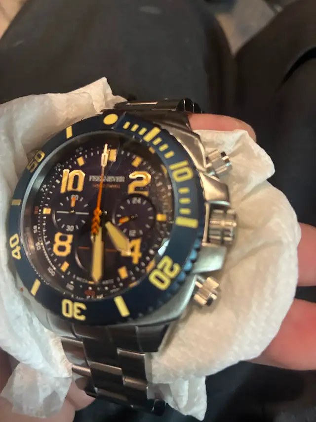 Selling Lige FN Men's Proffessional 50ATM Diving watch new with insulated shockproof Box and bracelet adjustment too to resize it yourself. Features a very reliable Seiko hybrid SeikoVK63 movement, domed anti-reflective, anti- scratch resistant true sapphire crystal, crowned with a 120 click bezel. This is a fully functional professional grade diving watch. Asking $120. Watch is 500 meters or 2000 feet water resistant. All push buttons, main crown, and Helium Valve screw down for total and secure water seal. Yes you can shower, wash dishes, and go swimming with this watch. Features a VK63 Hybrid Seiko movement, analog time with sweeping hand chronograph. 3-eye windows showing seconds, 24 hour, and minutes windows, has date window at the 6 ‘O clock window. This is a serious watch for serious people. All brushed, surgical stainless steel, inverted links that's the stainless steel as well. comes with link adjustment tool and shockproof insulated case for storage. Watch is 255 grams of all solid stainless steel. Not a light watch but definitely a sophisticated look and feel. You definitely feel the quality in this watch. It's An absolute steel for $120. It's a perfect gif for anyone who loves water and the look and feel, and the full functionality of diving watches. CALL OR TEXT ME AT 431-844-5393 if interested. No e-transfers. I don't go out much in this weather so cash & pick up ONLY. Thank you and have a great day.