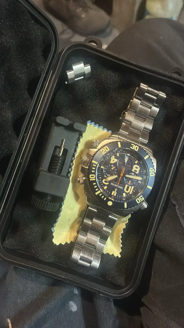 Selling a 50ATM , 500 meter (2000ft) water resistant watch with hybrid Seiko VK63 Mecca movement professional diving watch. Easily one of the best affordable watches I have ever owned. Features thick inverted links. ALL brushed 316 surgical stainless steel. Actual weigh is 250grams the technical specs are as follows;