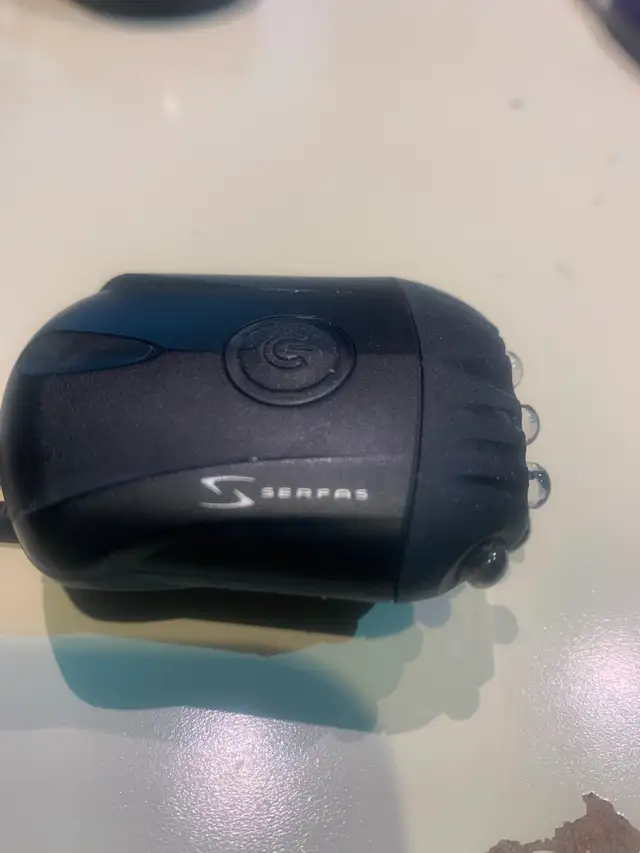 This tail light, made by Serfas, is compact yet very bright and effective. Rechargeable, I can't find the cable. Select which function works best for you, at the time. 5 bright red lights can be on bright or dim- or flashing. Any function will be sure to get you seen when cars come up behind you.