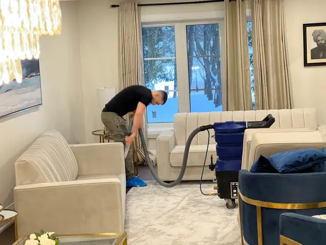 We use hot water extraction method and Environment friendly chemicals. We do not move heavy furniture.