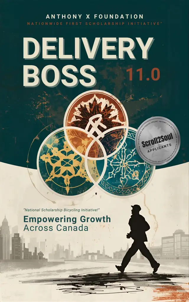 This is an advertisement for 'Delivery Boss Academy'. Scholarships are available immediately for Men and Women. Submit an application by February 15, 2026.