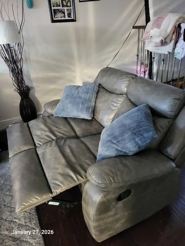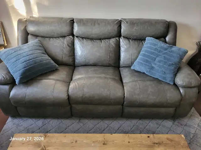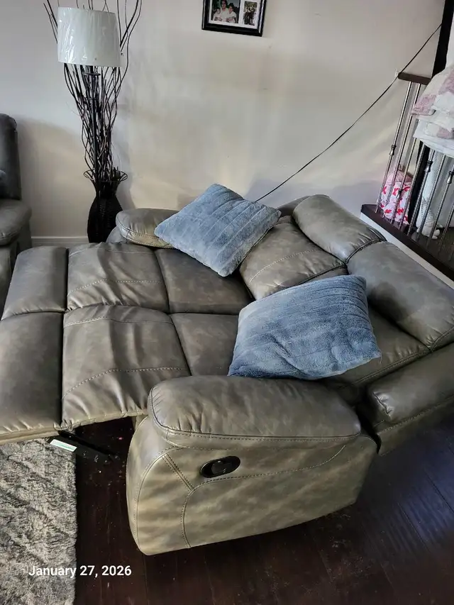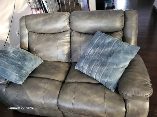 The Recliner's all work on both couches. Faux Leather so easy to clean. No rips or tears and under a year old. Selling asap as I have purchased new couches and theses are in the way. No truck so pickup is a must. The backs do come apart for an easier/lighter move. Responde to ad or text 780-975-9479