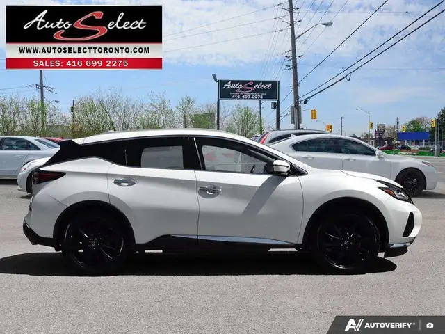 White Nissan Murano Platinum Edition - Factory Navigation Pkg - 360 View including Back-up Camera - Fully Equipped - Premium Plaided Black Dakota Leather Interior - 20 Inch Black Alloy Wheels - Tinted Windows - a Full Panoramic Sunroof - Power Tailgate - All Wheel Drive - Apple Carplay - Android Auto - Blind Spot Monitoring - Premium Bose Stereo System - Factory Remote Start - 3.5L V6 - Front and Rear Heated Seats - Air Conditioned Seats - Heated Steering - Gorgeous Condition - Very Well MaintainedAll Credit Accepted, Low Payment options Available.Financing & Extended Warranty Options Available, Additional charges Apply.All Trades Welcome!