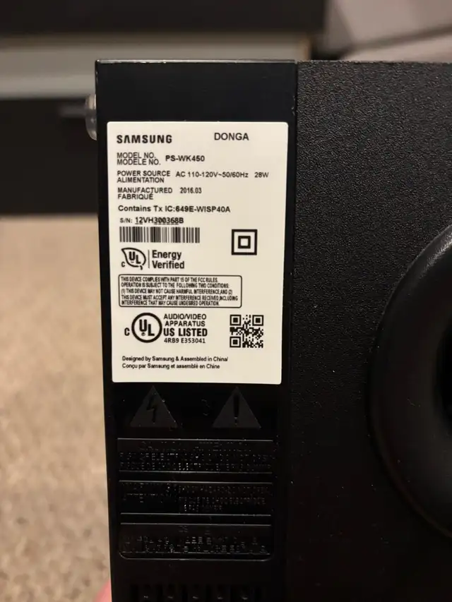 Samsung Bluetooth sound bar and sub