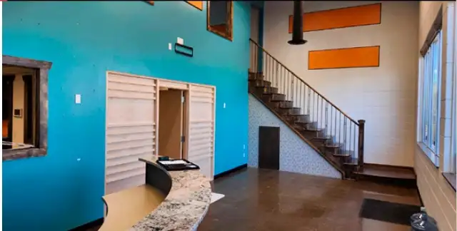 • Double man door at back of unit with multiple storage rooms
