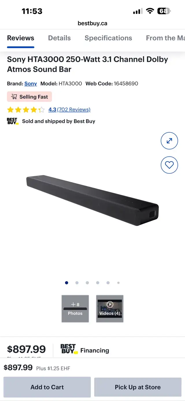Hello we are selling our Sony A3000 Soundbar since we haven't been using it a lot. It's in very good condition just like brand new. If interested please text/call 204-990-3653 thanks.