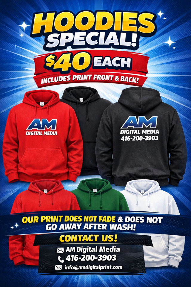 Any Hoodie including print front and back for $40