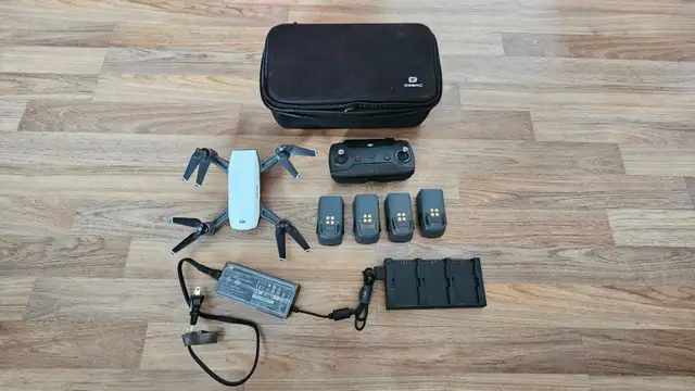 Comes with everything you see 5 battery 2 charge 1 controller 1 drone 1 case I was asking $200 have to go for $100 Firm battery issue doesn't hold charge