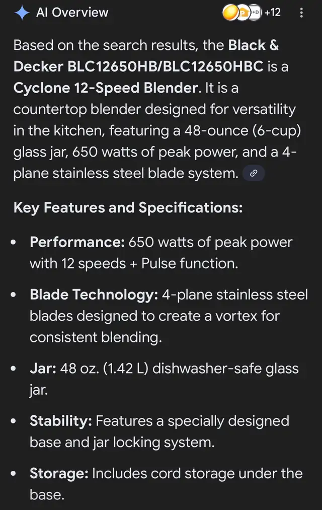 Black and Decker 6 cup 12 speed Blender In good working condition. See photos for details.