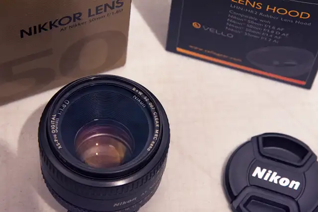 Nikon 50mm f/1.8 AF-D prime lens (new in box). Includes all the original lens caps, manual, & factory packaging.