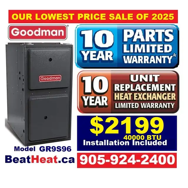 ✅Goodman GR9S96 40K BTU with installation and warranty for $2199