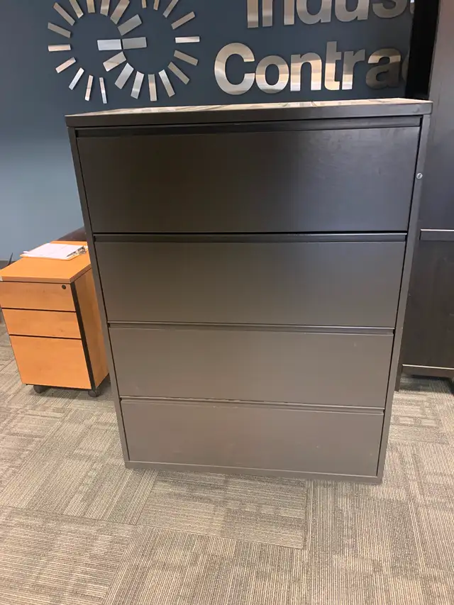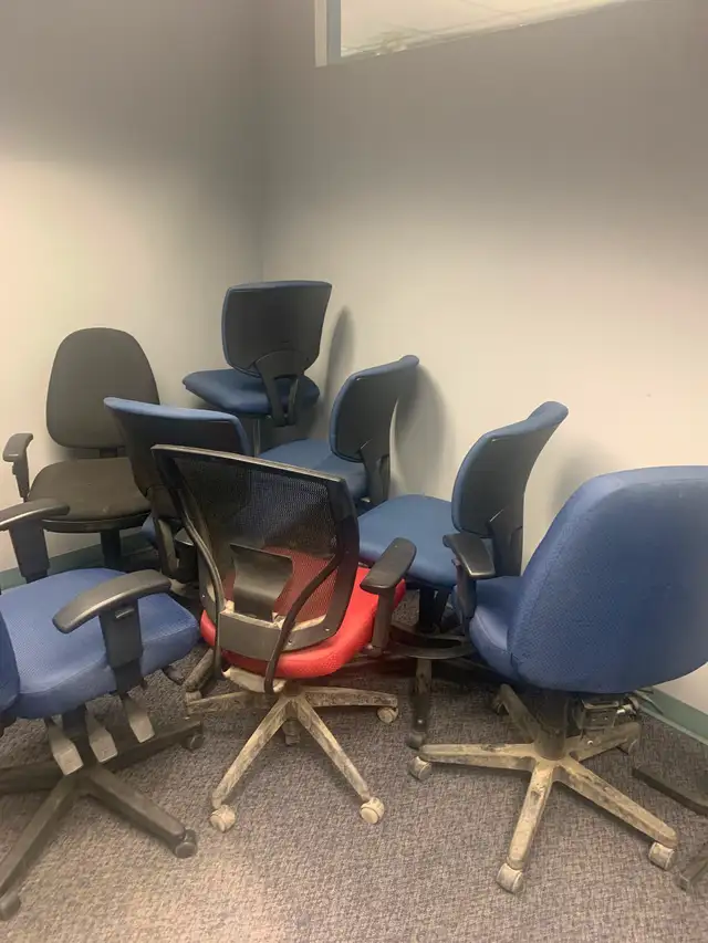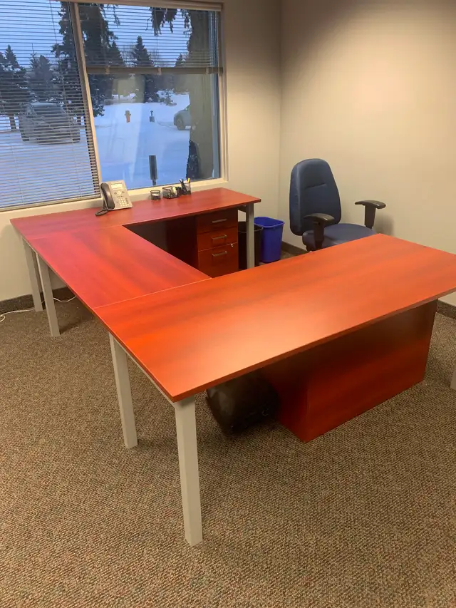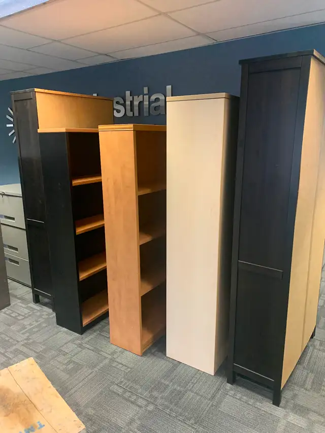 Clearing out office furniture. Shelving units, tables, variety of filing cabinets, chairs and desks. Larger desks can be changed to L shaped. Prices vary.