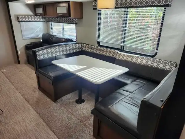 ✅ Front queen bedroom rear double bunks convertible dinette/sofa