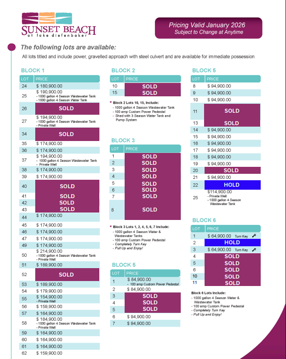 For more information, please visit our website at www.sunsetbeachforsale.ca or contact Shelley by email at shelley@sunsetbeachforsale.ca or by text/phone at (306) 231-4895.