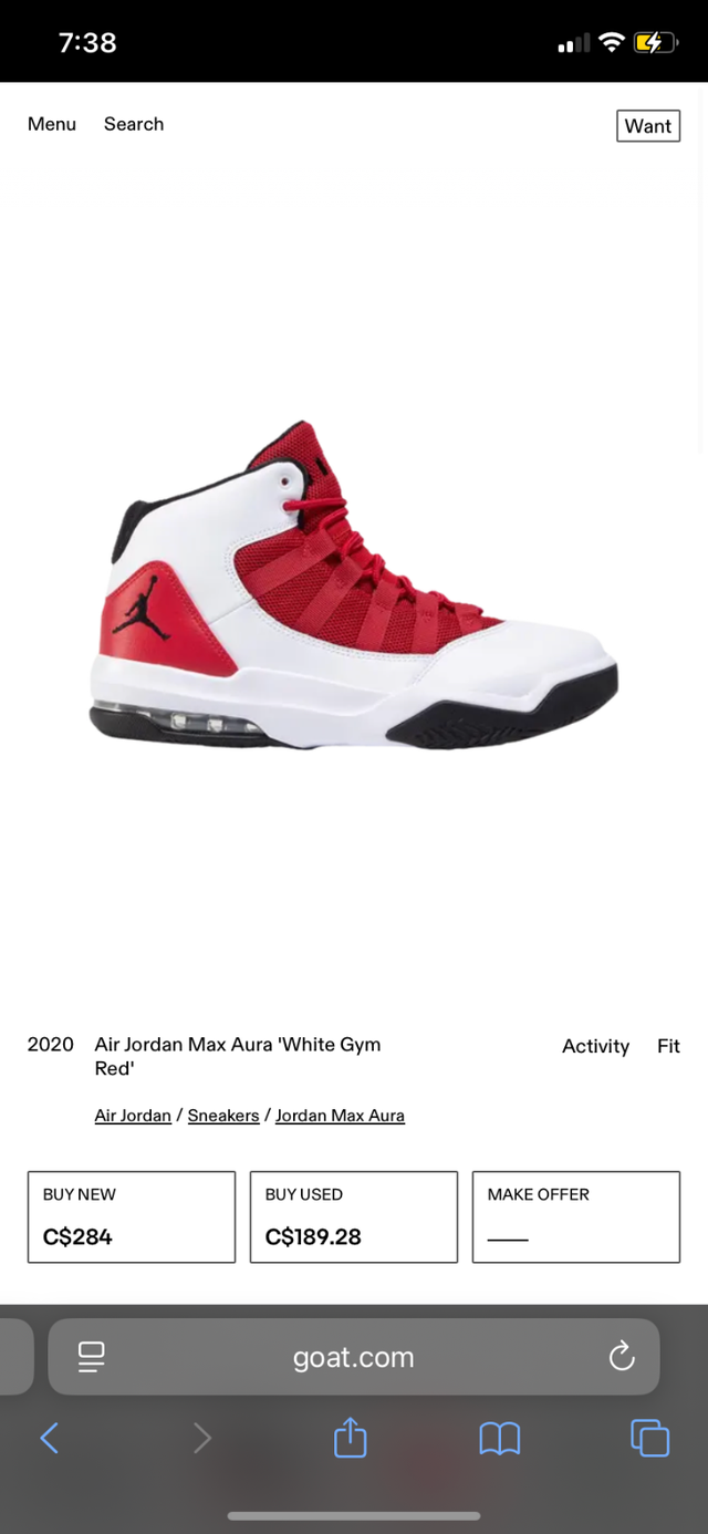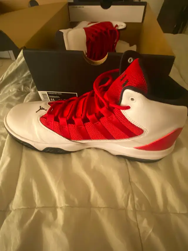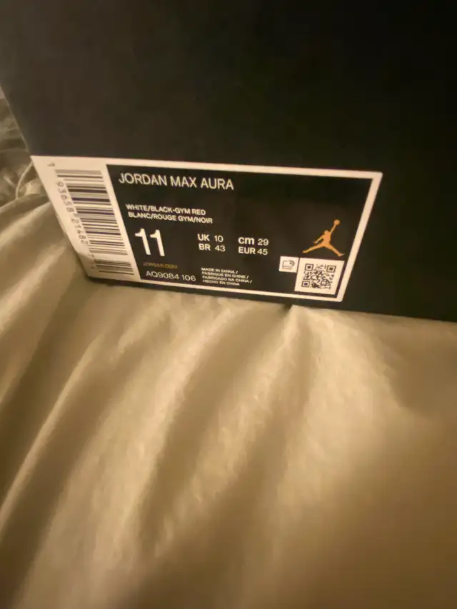 Jordan Max Aura, gym red size 11. Worn less than 5 times. Sat in the box in storage for most of the time I had it, just want to move it along.
