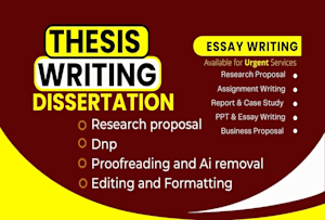HI! I provide professional academic writing support for essay writing, thesis projects, case studies, reflective papers, proposals, and reports across multiple disciplines. The service is designed to help students and professionals produce clear, well-structured, and academically sound work that meets institutional standards and deadlines.