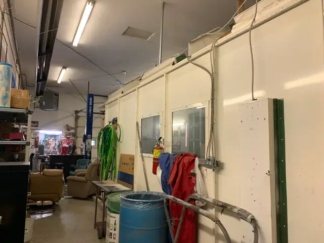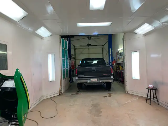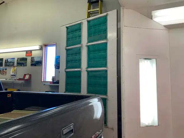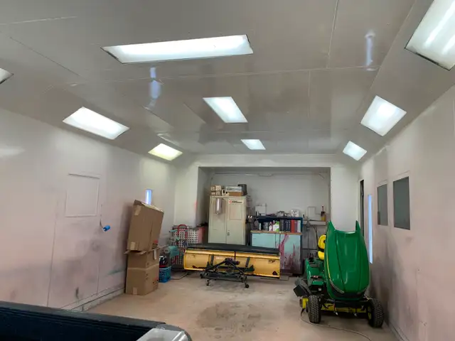 Used professional auto body paint booth in good condition. 14X24X9.5. All wiring has been replaced. All good fluorescent lighting. Must be disassembled. $10.000.00 cash. Power lift 3000.00, $200.00. Gas air mask and pump $1 00.00. Automotive Jack Liner $100.00. Automotive nail Uni Spotter and metal shrinker $125.00. Air tools, five for $50.00. Universal bumper lift for doors, tailgates etc.$200.00. New Big Buddy 18000BTU outside propane heater $175.00. 5th wheel hitch $200.00. 1955 Chev Bel Air bezels and lenses $100.00. Phone calls only please 403 934-3530 Strathmore, AB
