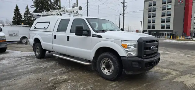 Call - ONE OWNER - Runs great - 2014 Ford F350 Super Duty Pickup Truck - 2WD - 2-Wheel Drive - 8 Foot Long Box - with box cover and EZ loader both are removable! crew Cab 4 Doors - V8 6.2L Powerful Gas engine! Towing package, trailer package with brake controller, AC, Radio, And much more,
