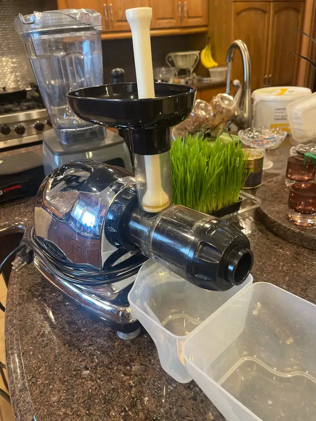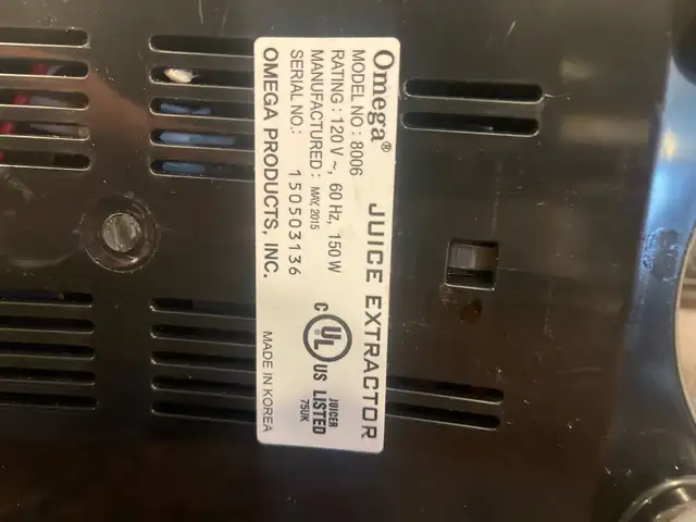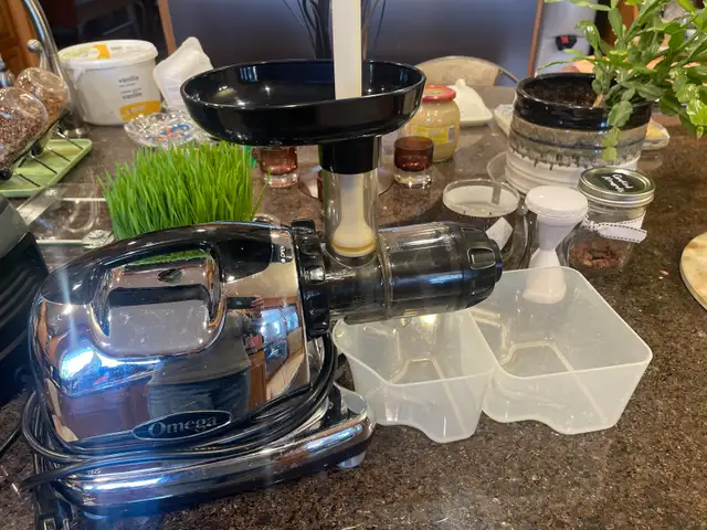Omega 8006 Juicer. Works excellent, and as it was designed. I've been juicing 5-6 years now. Celery, cucumber, watermelon or green juice, this unit make quick and easy work of it. Also grinds coffee beans very nicely, and extrudes fresh spaghetti, linguine bagels, etc. New strainer filter, nut and auger. All parts included. Can deliver in the city of Winnipeg for $50, prepayment required. Call/text John 204-999-3703. $160 firm.