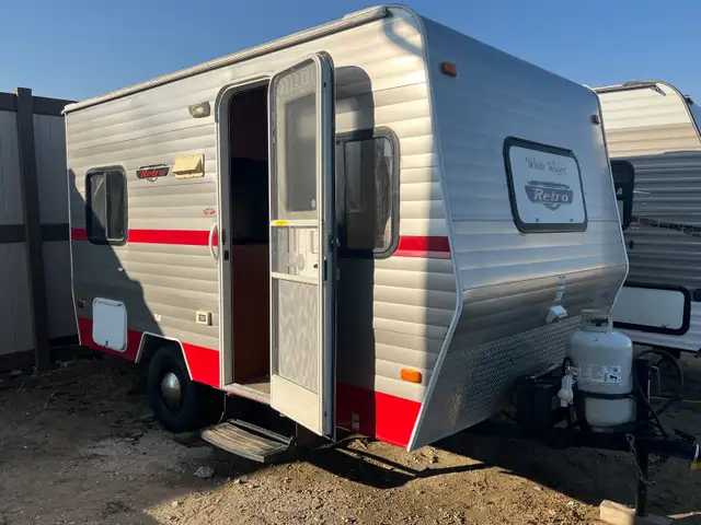 The 2014 Riverside White Water Retro is a lightweight travel trailer known for its vintage look, combining 1950s-era styling! Comes loaded with modern amenities, a compact trailer, designed for easy towing and maneuverability and a full bathroom with a shower. Dining table makes into a small bed if needed.