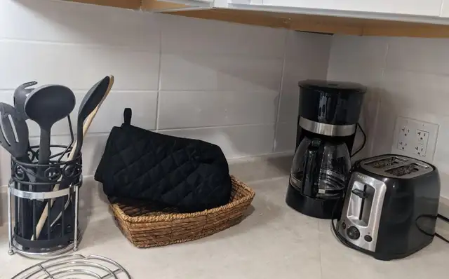 • Full kitchen: fridge, oven, microwave, coffee maker, kettle, cookware