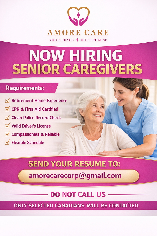 Amore Care is hiring compassionate caregivers to support seniors.