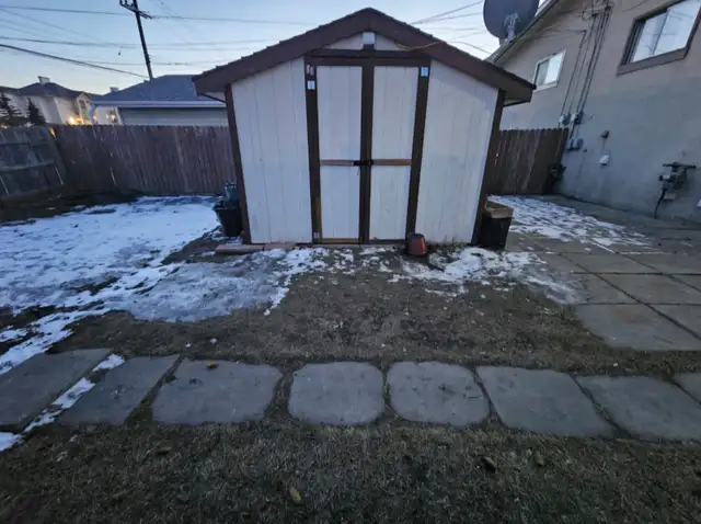 Space is clean, locked, safe, easy access from back lane road and front entrance.