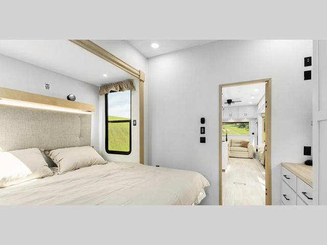 With each Sierra Destination Trailer by Forest River you will enjoy many luxurious features, such as crown molding over the kitchen cabinets, solid surface kitchen countertops, a memory foam mattress, plus so much more. The extra large picture windows throughout let natural light in and provide beautiful outdoor views, and each model includes three or more slides for added interior space. You'll find many exterior conveniences, like the porch light with an interior switch, the rain gutters with extra long drip spouts to prevent black streaking, and an electric awning with LED light strip, plus more! You will stay comfortable year around with dual 15,000 A/C units plus each model is constructed with an Underbelly Armor for better protection and insulation!