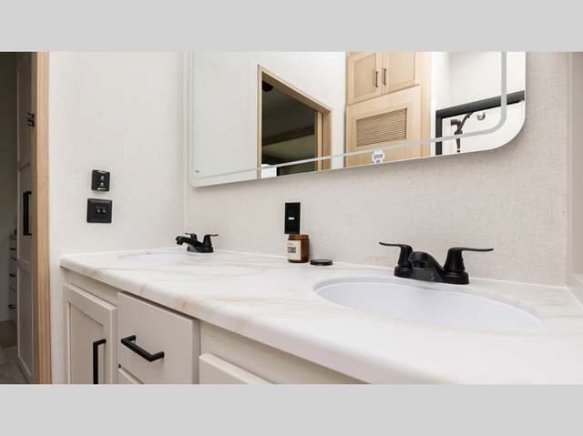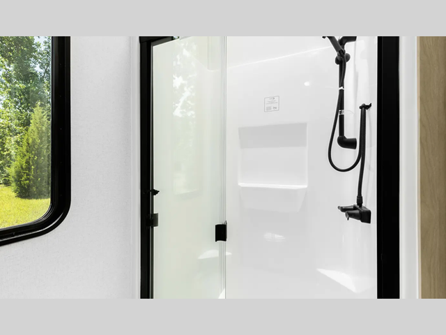 Rear Bath SWITCHBACK INTERIOR; DESTINATION PACKAGE; EXTENDED STAY PACKAGE; STABILIZER JACKS (4); THERMAL PANE WINDOWS; DRY WEIGHT - 12107 LBS