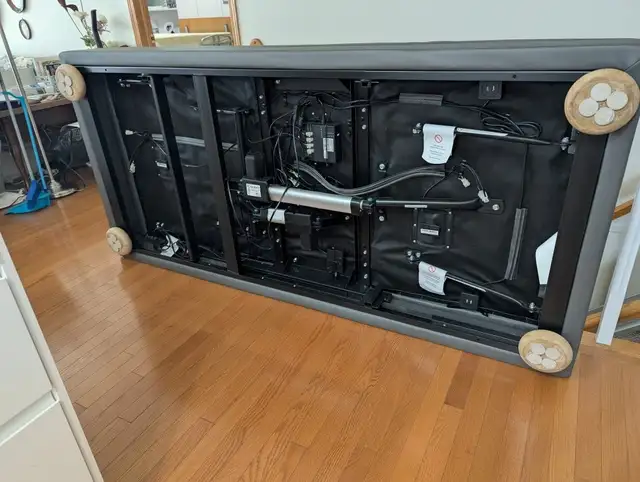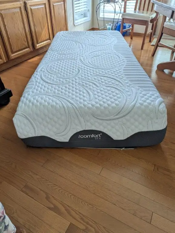 Base/frame is a motorized Motion Perfect II powered by an Ergomotion motor with multiple massage settings and remote control. Plugs into a 110 wall outlet. Adjustable upper body and legs. Serta iComfort EFX mattress is Standard Twin. Measurements are 77” x 38” x 11.75” thick. Made of Carbon Fiber Memory Foam and iComfort Gel Memory Foam for a combination of cooling and pressure relief. The carbon fiber helps channel heat away, while the gel memory foam offers support and comfort. It also includes a base layer of Serta Balanced Support Foam for added comfort and a Serta Foam Core for durability. Plus 3 types of leg sets for bed frame.