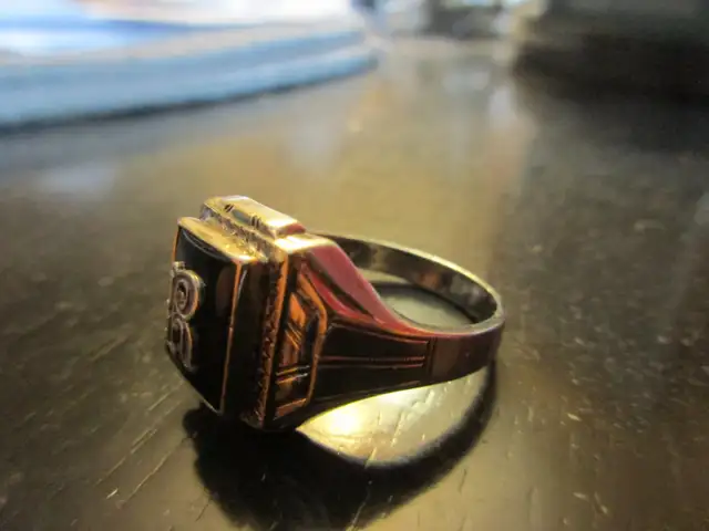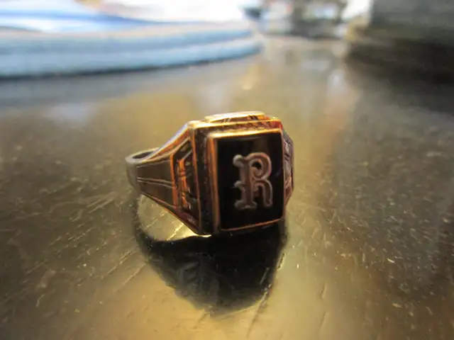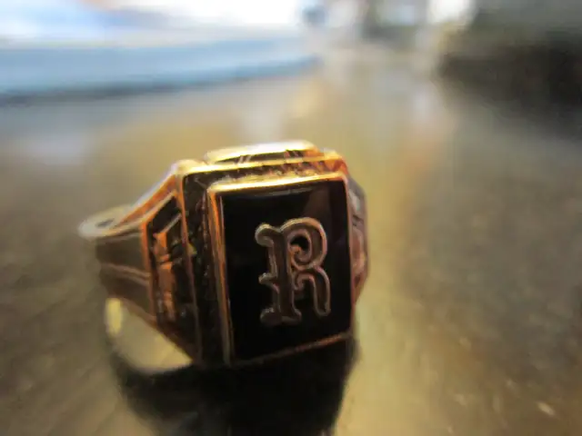 for Sale Men Center Letter - R - Ring inside marked stamped colour gold silver mens size 9 - 10 not 100% sure local pick up call or text 647-515-3138 Richard