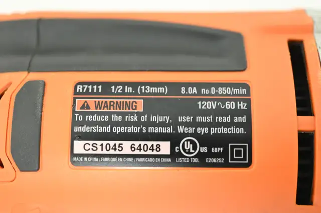 Ridgid Drill 1/2" R7111 with keyed chuck USED in working condition. Please see pictures for more details.