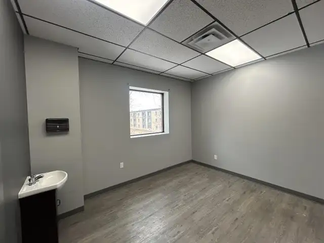 Unit 201 - Move right in or make it your own! This bright 900 sq. ft. unit offers a reception area leading into a spacious open-concept layout with abundant natural light from large windows, along with one private office featuring oversized windows.
