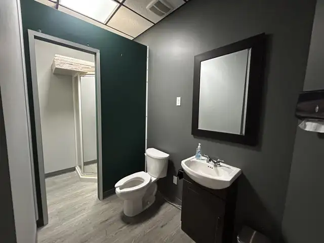 Unit 214 - Spacious 1,260 sq. ft. unit offering a large reception area, multiple offices, and a dedicated lunchroom. Features a private washroom with shower and sinks in every office. Move in as-is or customize to suit your needs.