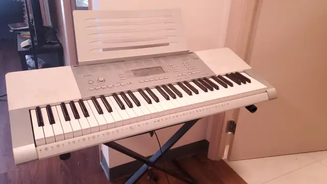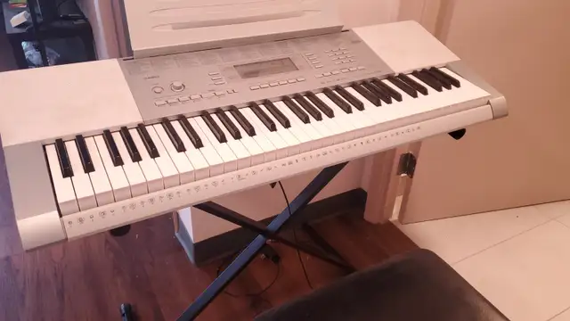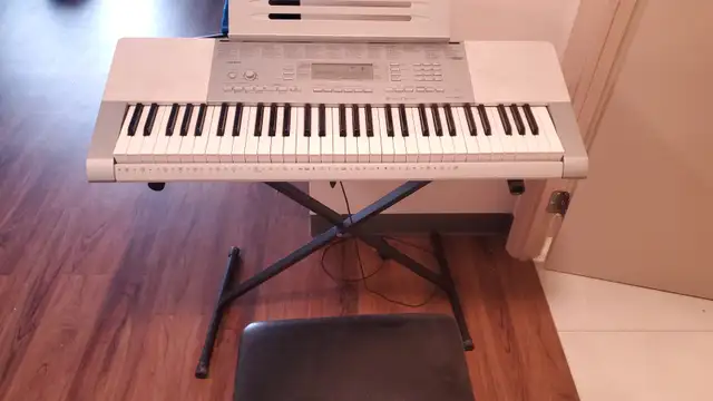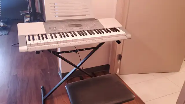 Casio LK-280 Keyboard - comes with stand, bench/seat, and power cable. It's in perfect working condition - I've only used it a handful of times. The stand is a bit wobbly, it just needs an allen key to fasten it. Comes with a small leather piano bench.