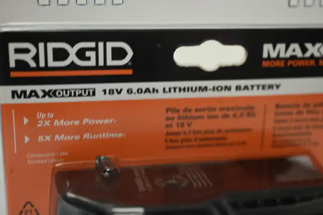 Ridgid 6ah Battery 18v Max R840060 output lithium-lon Brand New. Please see pictures for more details.