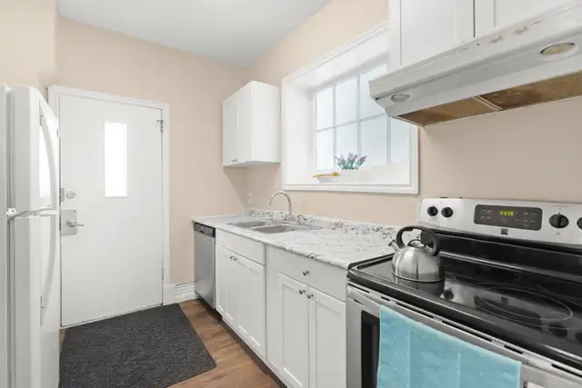 Offers anytime after open house. Tastefully remodelled 3 bedroom 1 bathroom on a quiet street close to Polo Park Mall. Step inside to vinyl plank flooring throughout the main living area, 9' ceilings in the living room with west facing window letting in an abundance of natural light. Formal dining room leads you to the kitchen with sleek white kitchen cabinets, newer counters, SS dishwasher/stove and back door leading to you the maintenance free backyard with double parking pad. Upstairs offers 3 spacious bedrooms, remodelled 4 pc bthrm with deep soaker tub and acrylic tub surround. Full high and dry bsmt basement ready for development. Additional features & upgrades: newer electrical panel, newer architectural shingles, Furnace and AC ('25) HWT('24) some pvc windows, fresh interior and exterior paint. Walking distance to schools, public transportation and all amenities.
