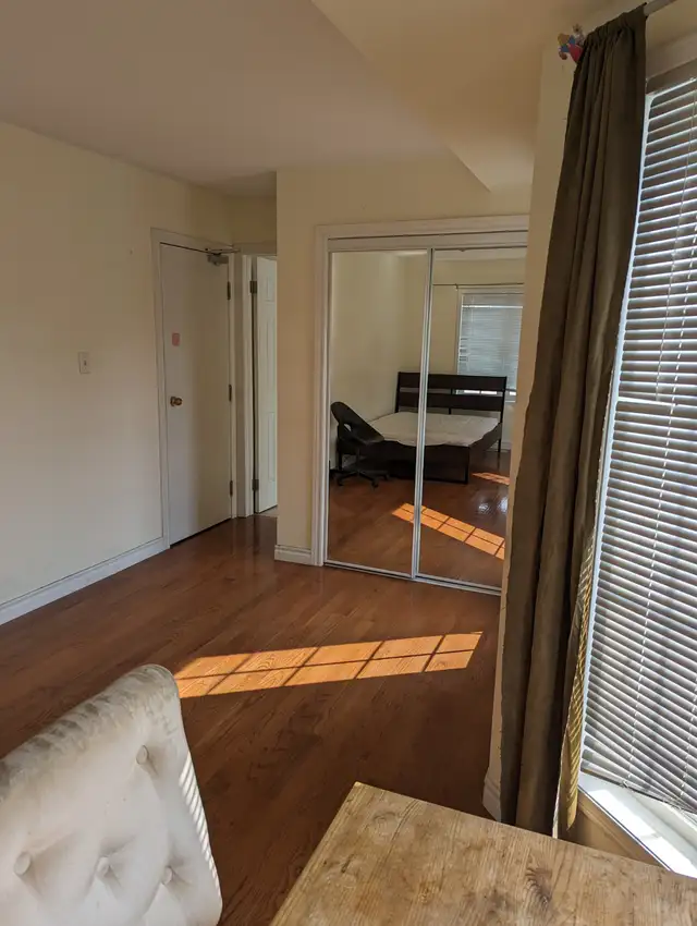 In a clean and quiet detached house, 2nd floor room, spacious, bright room with private ensuite bathroom with bathtub. Fully furnished with large full bed, built-in closet etc.