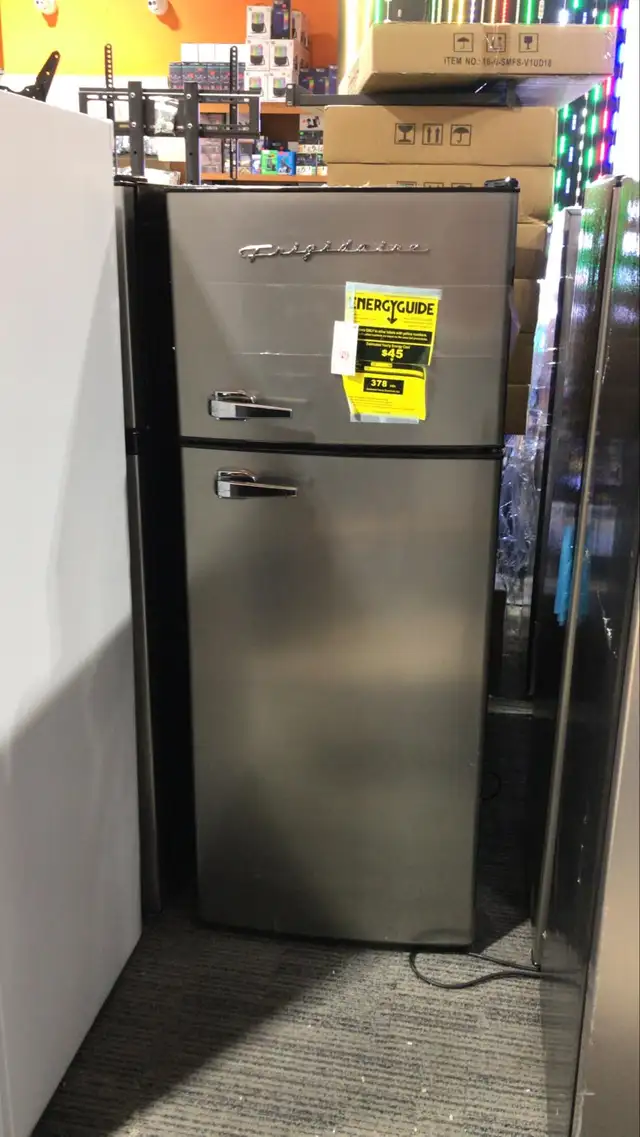 FRIGIDAIRE 7.5 CUFT STAINLESS.S, RED, WHITE AND BLACK REFRIGERATOR/FREEZER