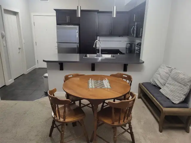 The apartment is extremely clean and includes a fluoride water filter, a large sectional, 65-inch Sony TV, a king-size bed with a very comfortable mattress, numerous dressers and drawers to go along with the spacious closet area, a beautiful solid wood dinning table with four chairs, and Hunter Douglas blinds.