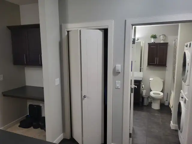 The building includes underground heated and gated parking for one car as well as ample guest parking spots in front of the building. There is a gym and an events space for board games and other activities. There is a bike cage in the underground parking area and available parking spots for a motorcycle.