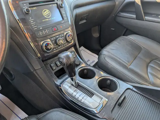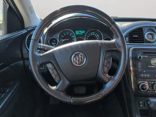 2015 Buick Enclave Leather AWDThis 2015 Buick Enclave Leather AWD delivers a comfortable and confident driving experience with spacious three-row seating and premium features throughout. Powered by a smooth V6 engine and equipped with all-wheel drive, it offers dependable performance and added traction in all driving conditions.Inside, the Enclave features leather seating with heated front seats, a heated steering wheel, and power-adjustable front seats designed for long-distance comfort. Rear passengers benefit from dedicated rear climate controls, making this an ideal vehicle for families and road trips. The third-row seating provides room for up to seven passengers while still offering flexible cargo space.Technology and convenience features include a backup camera for easier parking, Bluetooth audio connectivity for hands-free calling and music streaming, and an intuitive infotainment system. Tow mode adds extra capability for light trailering needs, while Buick's quiet-tuned cabin ensures a smooth and refined ride.